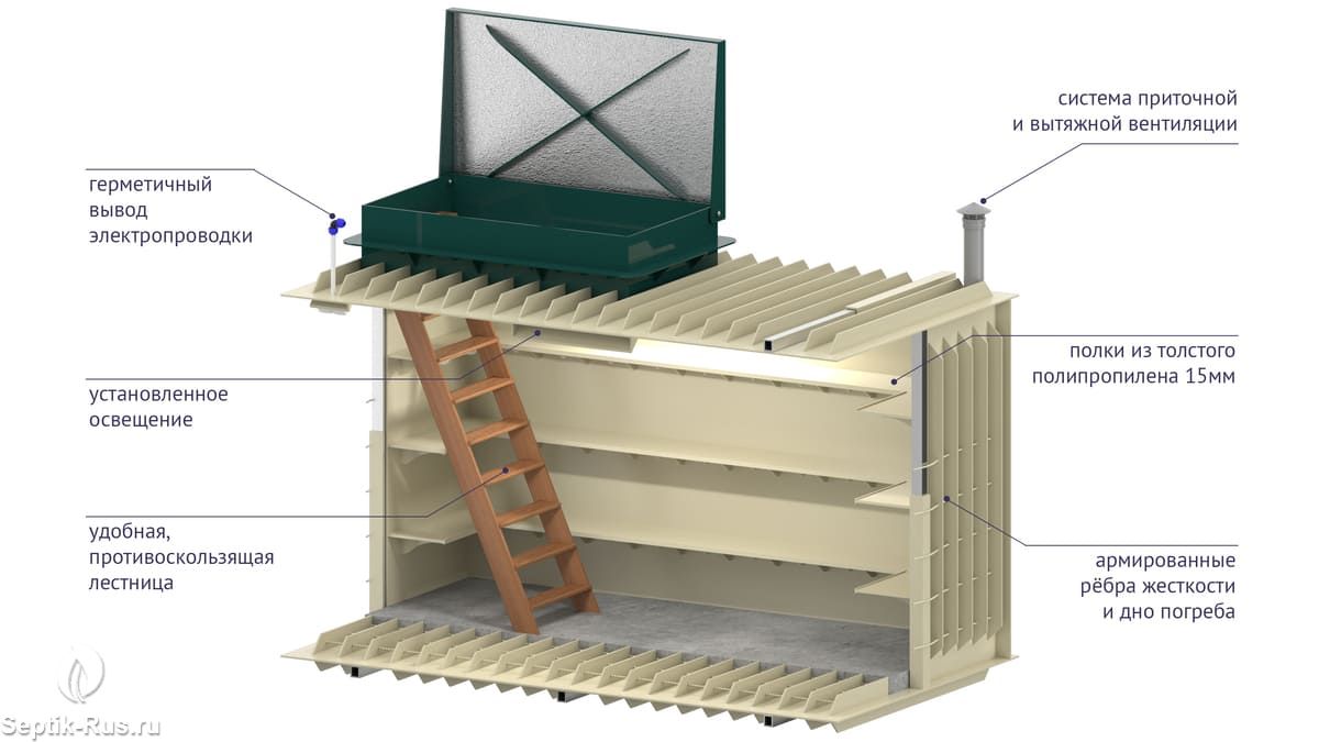 Что можно дополнительно приобрести для внутреннего обустройства погреба