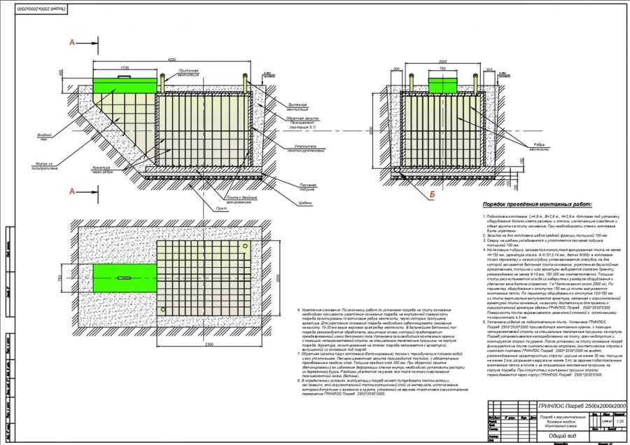 Монтажные схемы Гринлос Погреб ЛКТ 2500*2000*2000