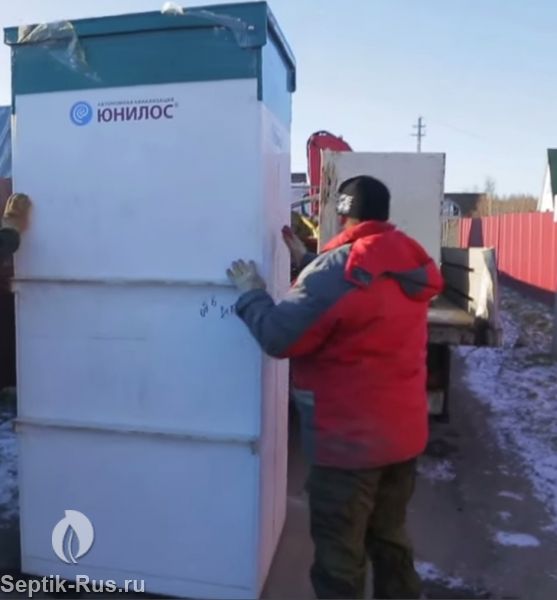 Подводящая труба должна входить в емкость станции на глубине 45 - 60 см, отводящая может быть расположена в 60 см от поверхности грунта. Срок эксплуатации септика – более 50 лет.