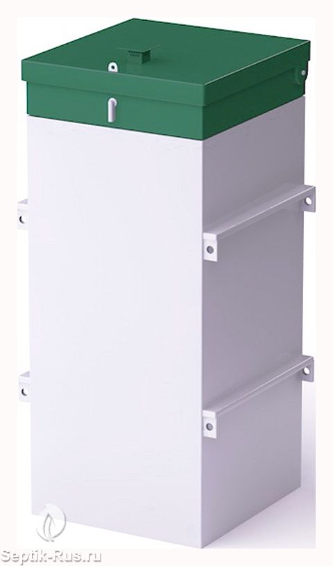 Подводящая труба должна входить в емкость станции на глубине 45 - 85 см, отводящая может быть расположена в 85 см от поверхности грунта. Срок эксплуатации септика – более 50 лет.