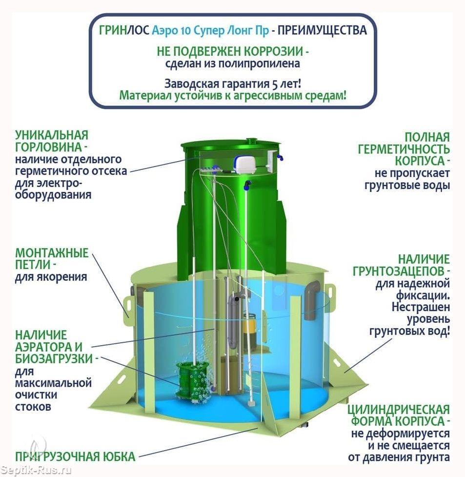 Биозагрузка, с помощью которой стоки очищаются более тщательно, входит в базовую комплектацию септика ГРИНЛОС Аэро 10 Пр Супер Лонг.