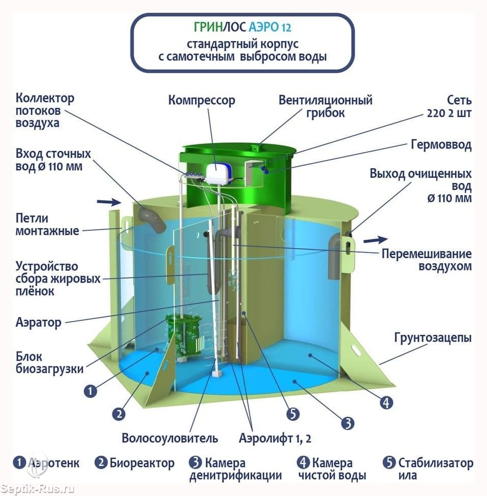 Обслуживание септиков ГРИНЛОС Аэро 12 производится один раз в год по следующему регламенту: