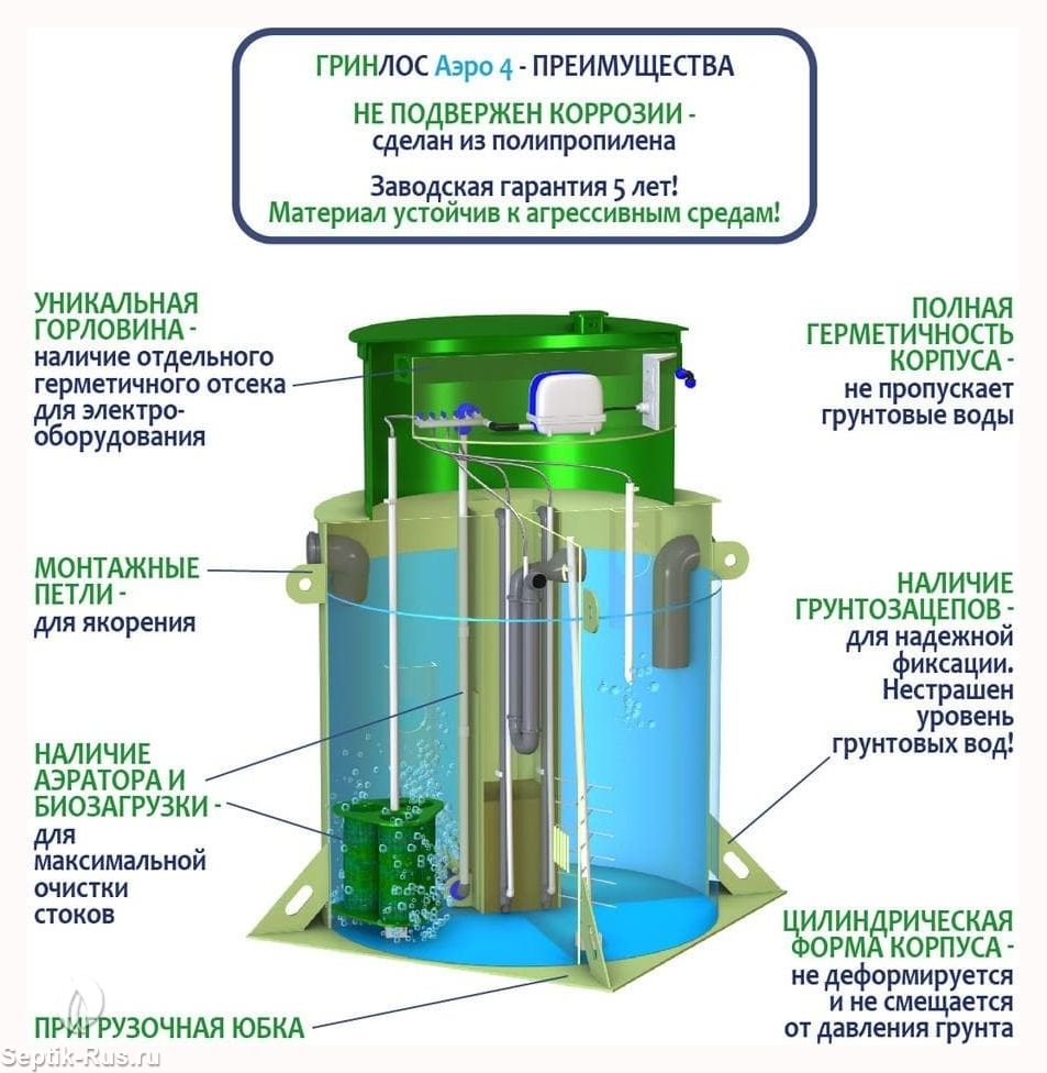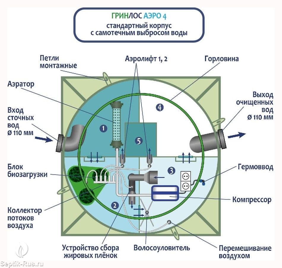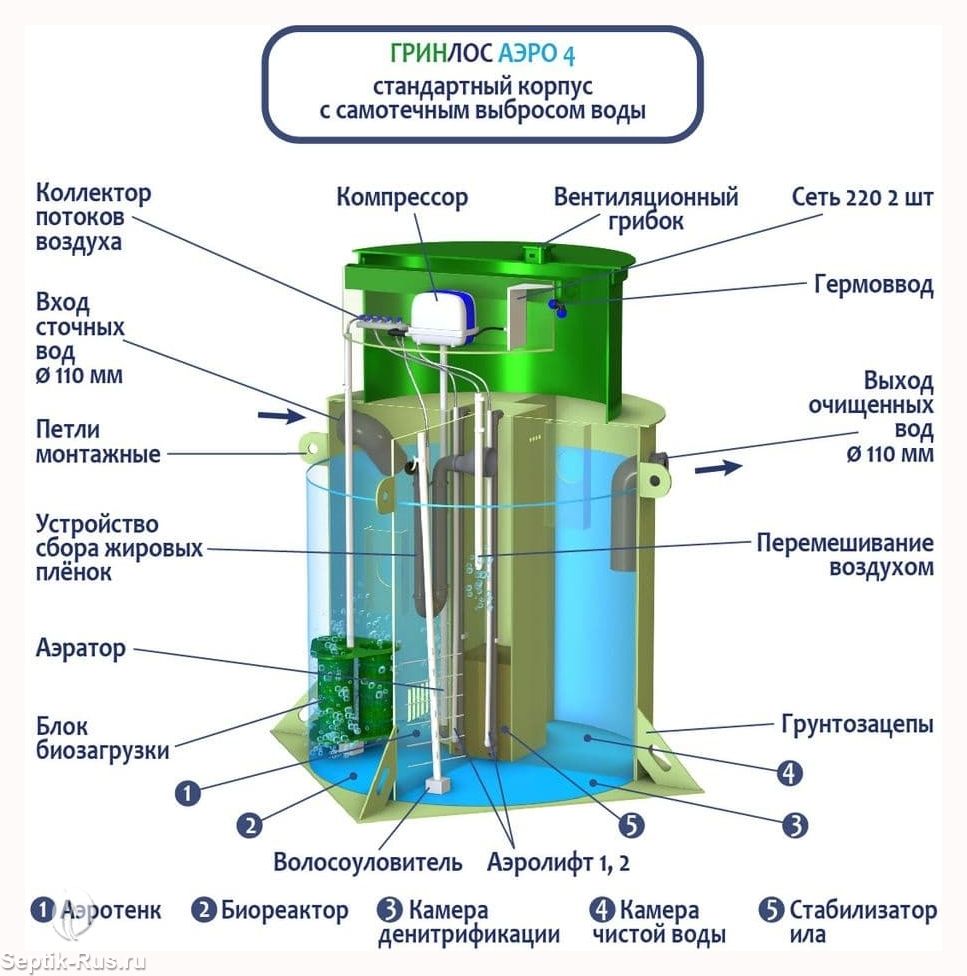 Обслуживание септиков ГРИНЛОС Аэро 4 производится один раз в год по следующему регламенту: