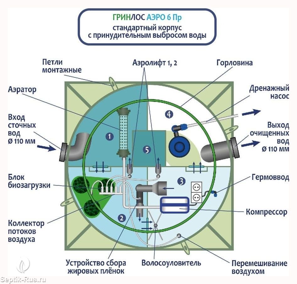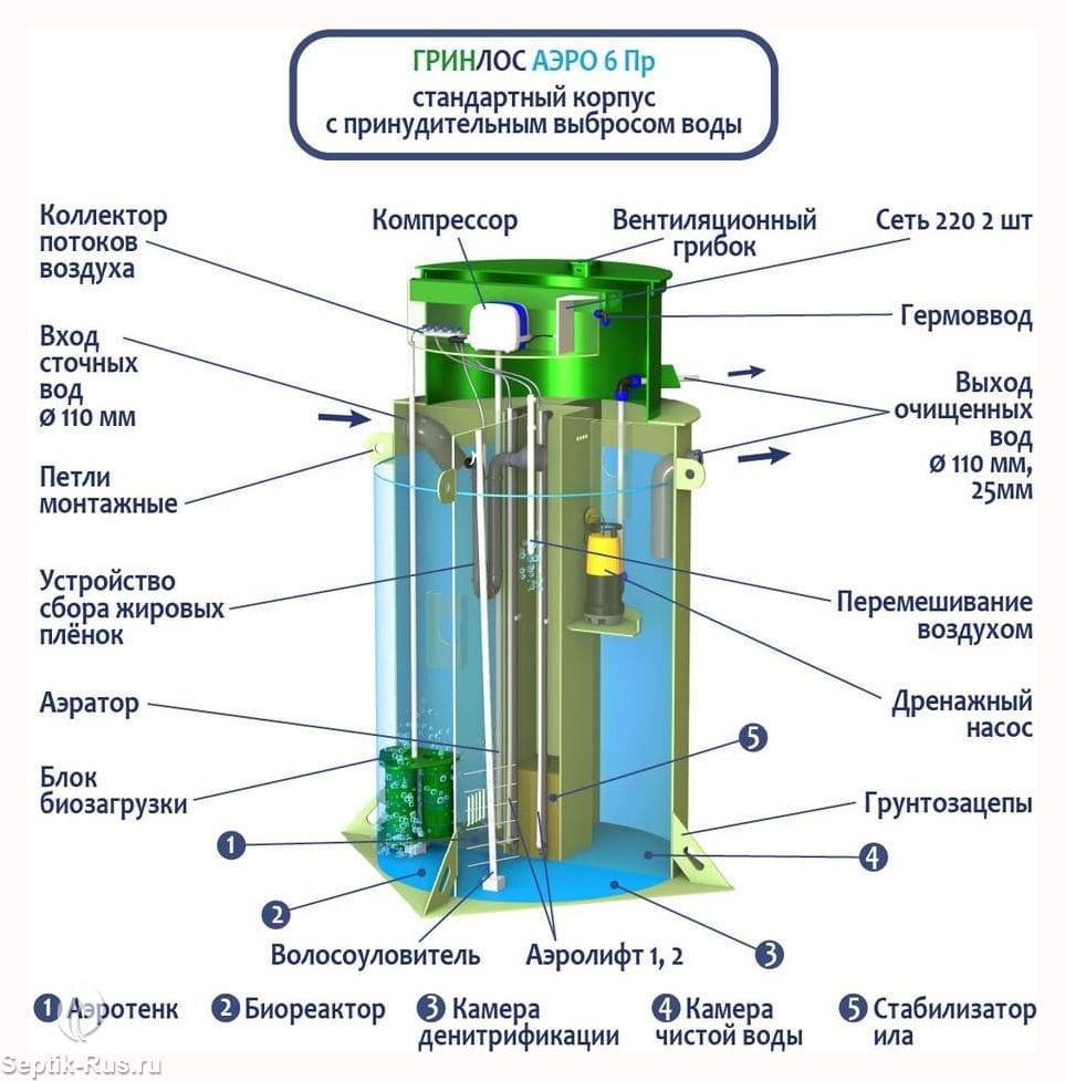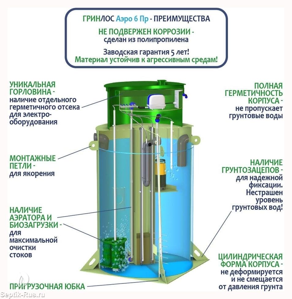 Обслуживание септиков ГРИНЛОС Аэро 6 Пр производится один раз в год по следующему регламенту: