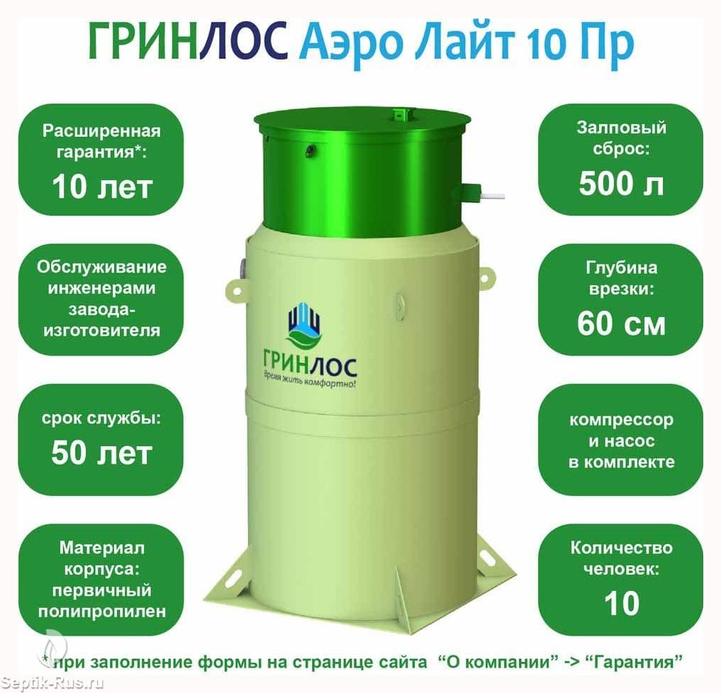 Доставим и установим септик Гринлос Аэро Лайт 10 ПР за 1 день по цене ниже конкурентов и скидкой на монтаж до 29%. Звоните!