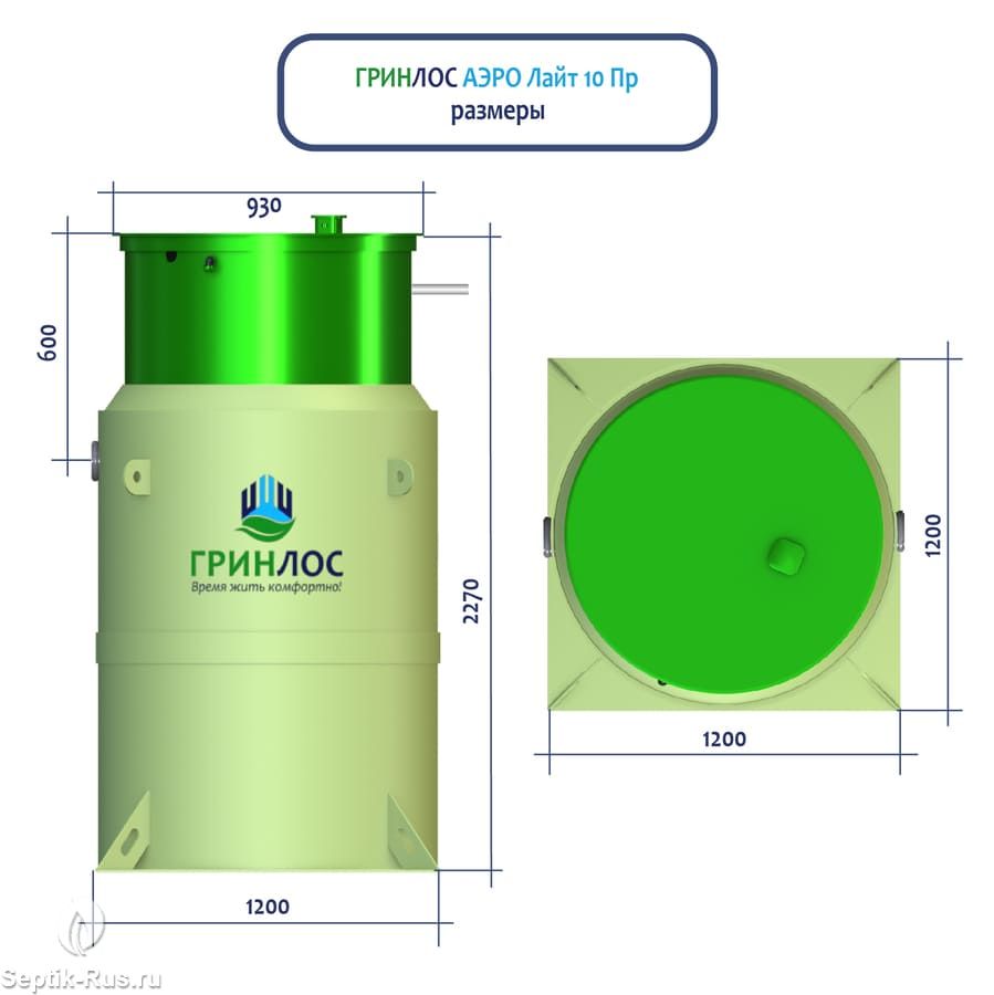 Модификация Гринлос Аэро Лайт 10 ПР выступает менее затратной в изготовлении и эксплуатации относительно септика Аэро .