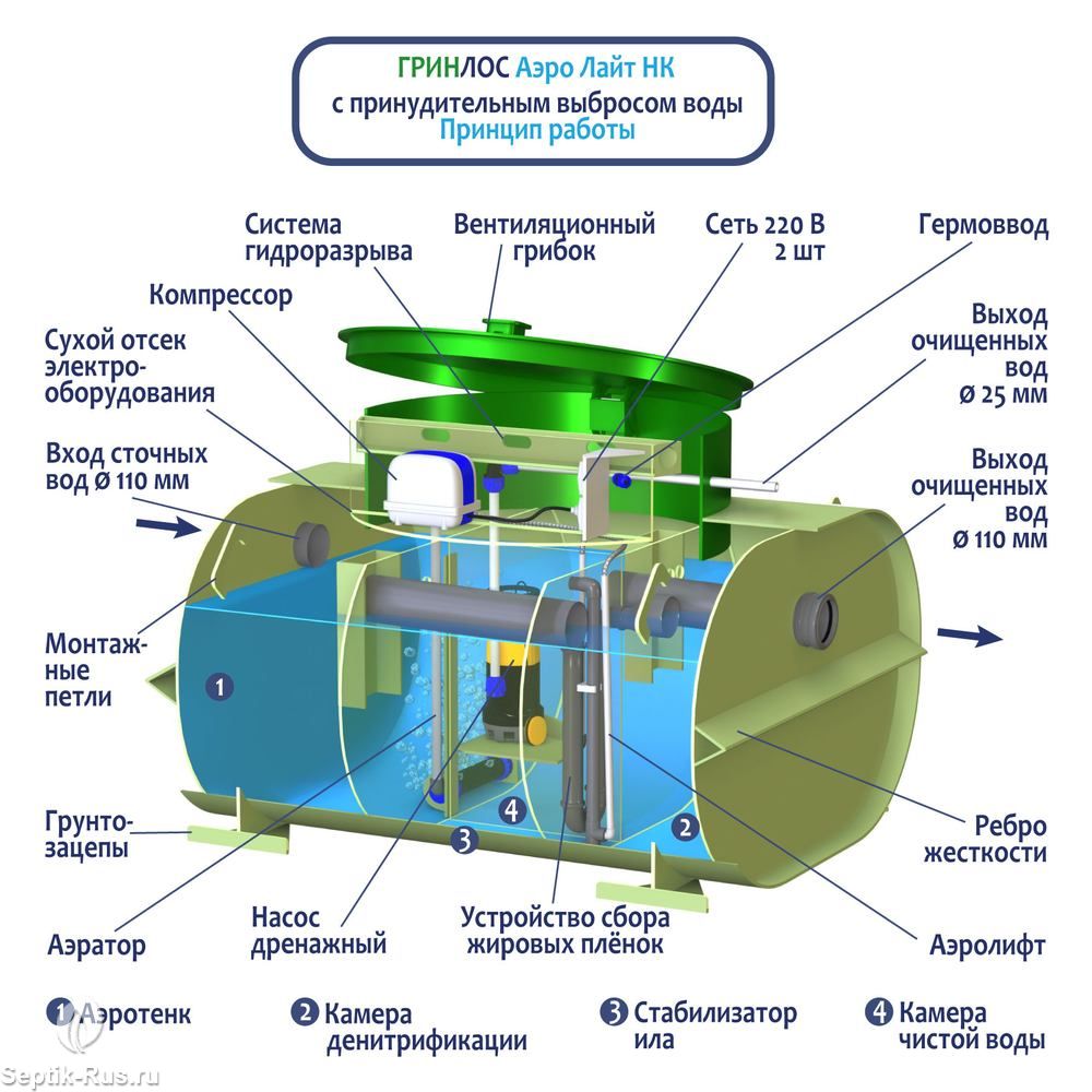 - Объём переработки: 0.54 м3/сут