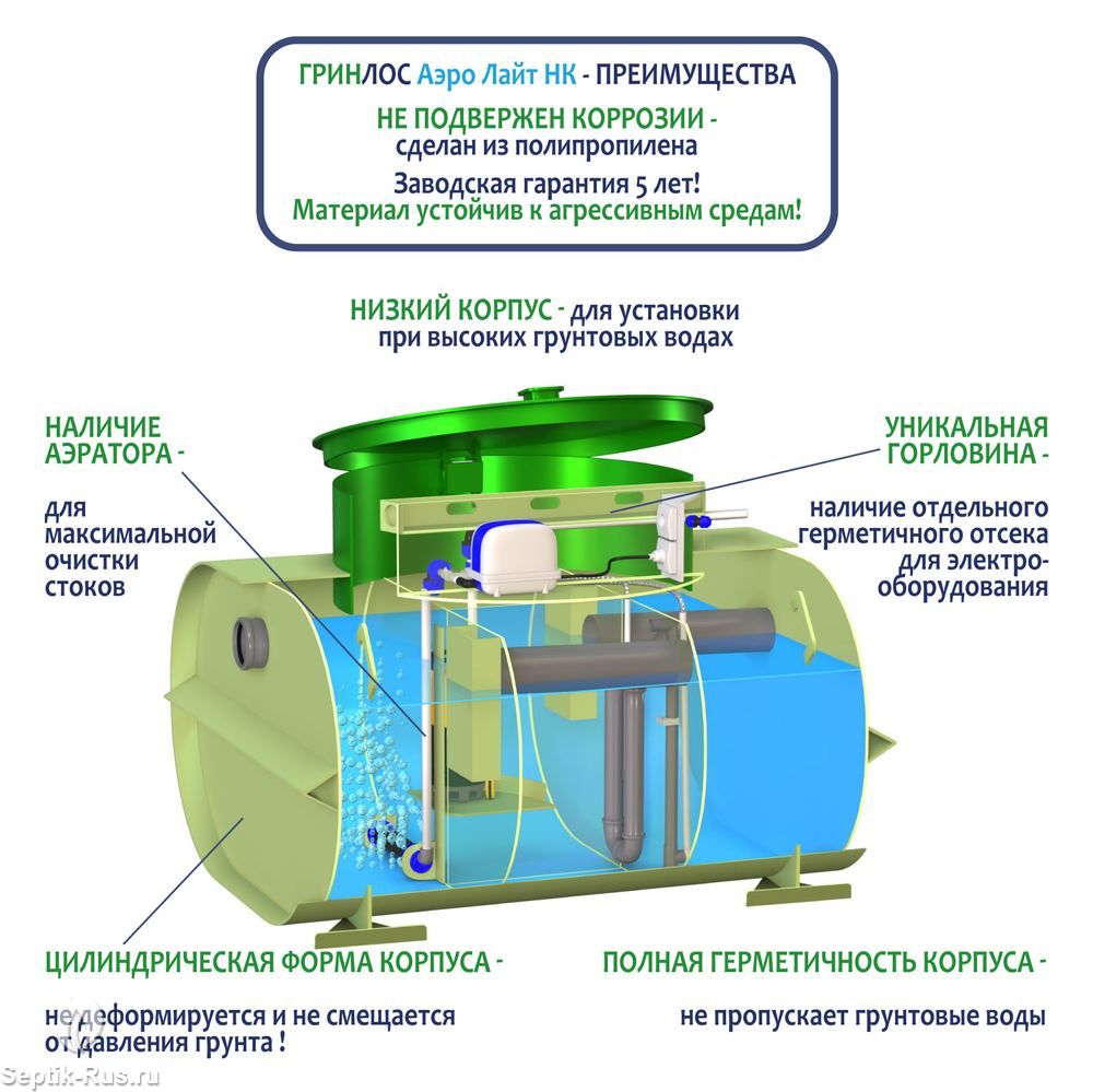Гринлос Аэро Лайт 3 Пр НК (низкий корпус с насосом)