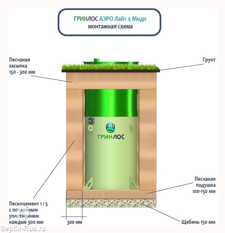 Перед непосредственным монтажом Гринлос Аэро Лайт 4 Миди специалисты осуществляют подготовку котлована. Его размеры определяются конструктивными особенностями выбранной модели оборудования.