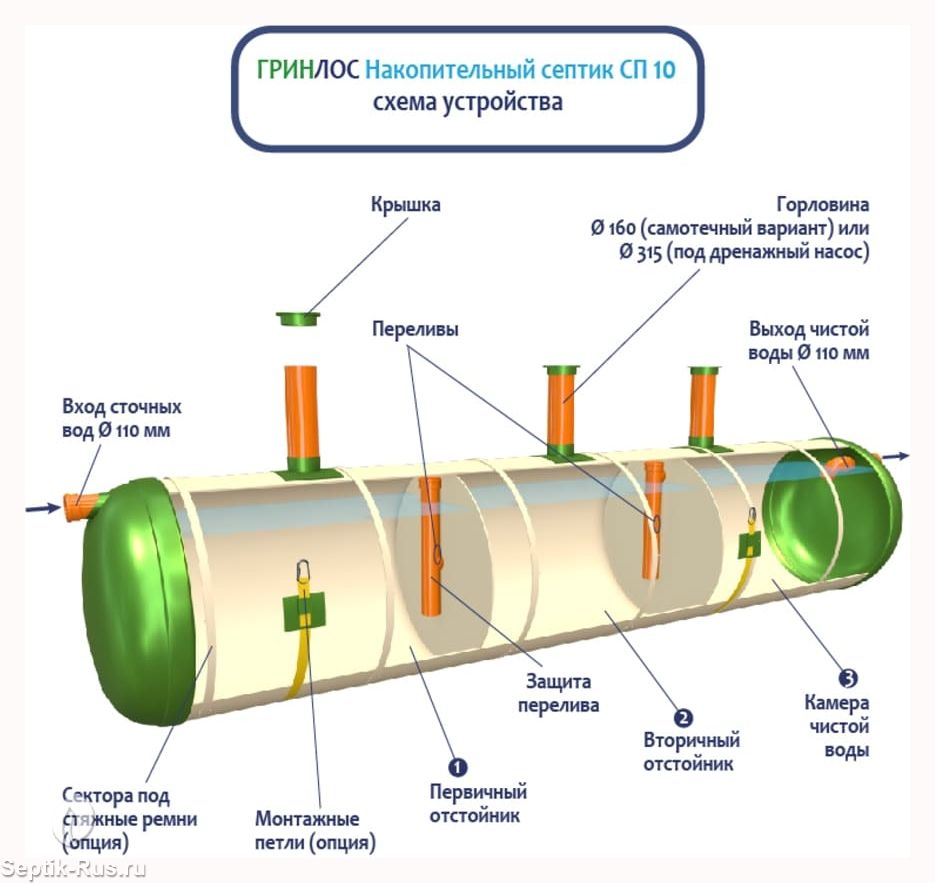 Накопительный септик Гринлос СП 10 представляет собой современное оборудование для сбора и временного хранения бытовых сточных вод. Он предназначен для использования в частных домах, дачах и небольших предприятиях, где нет центральной канализационной системы.