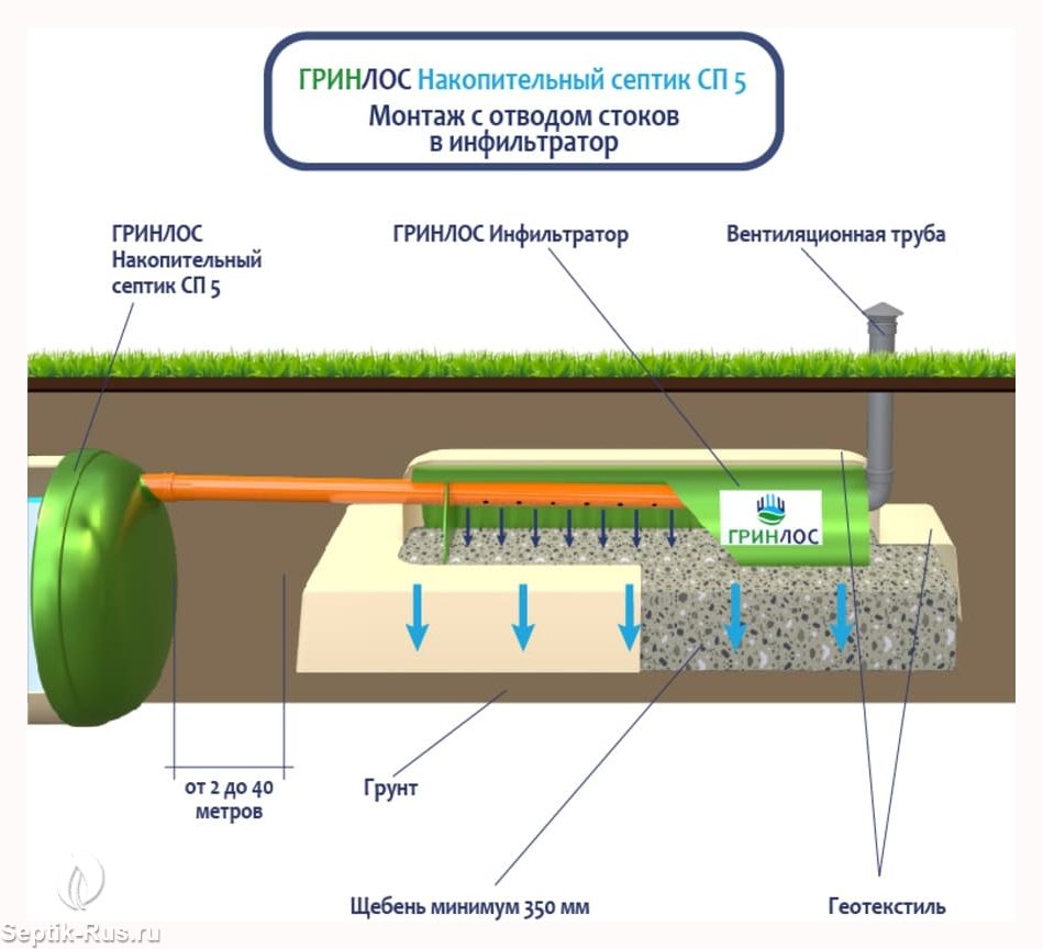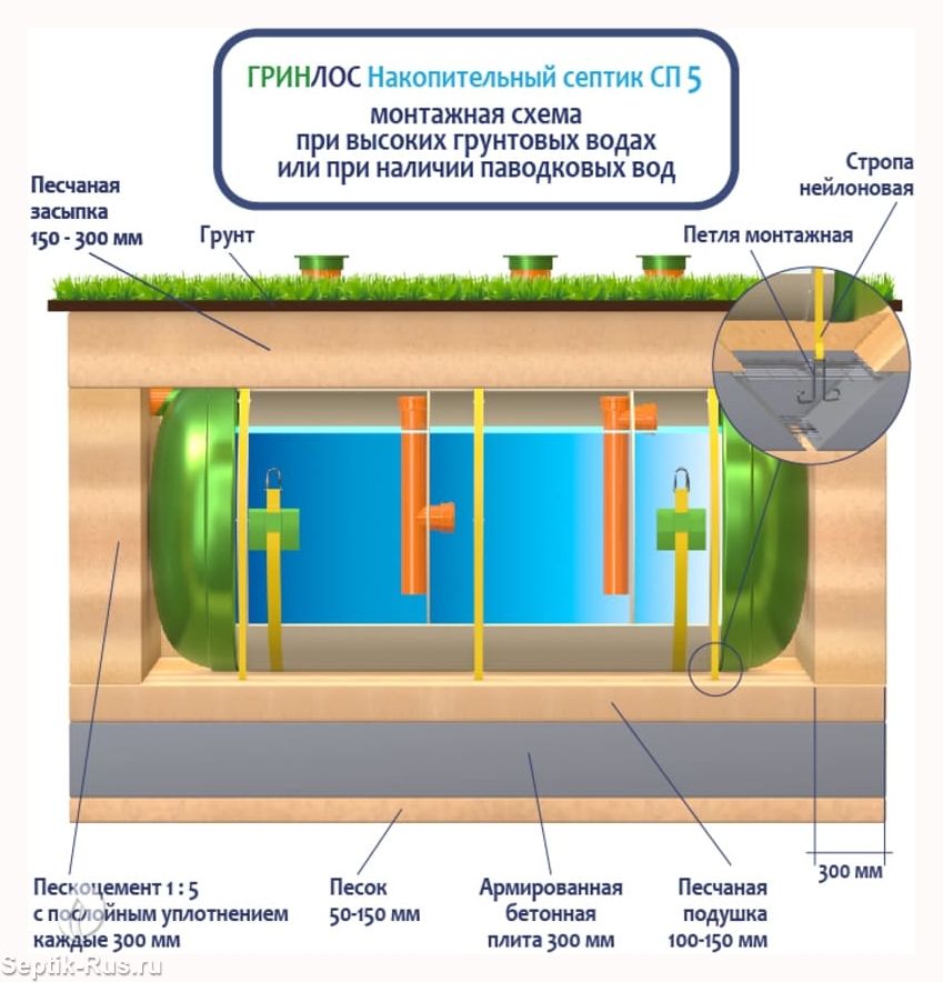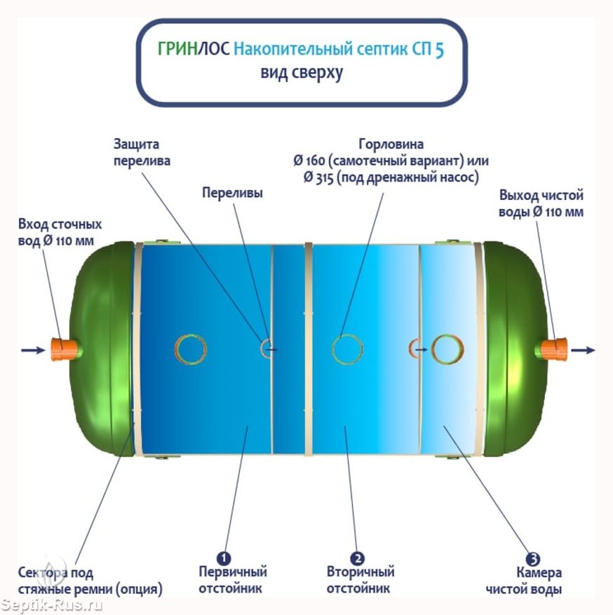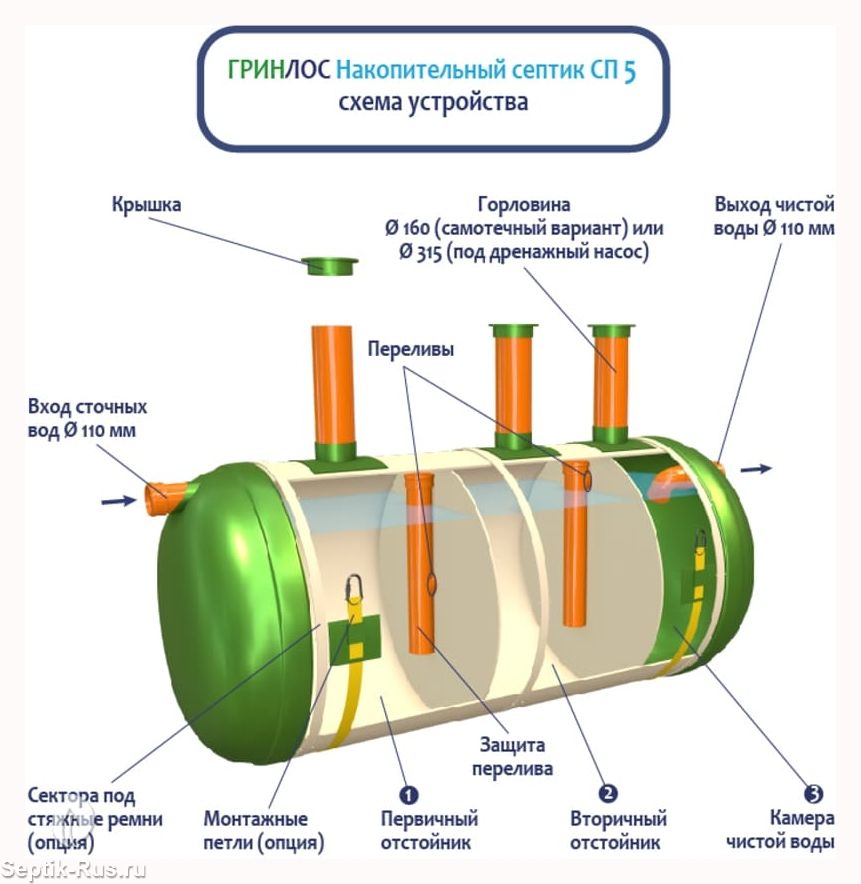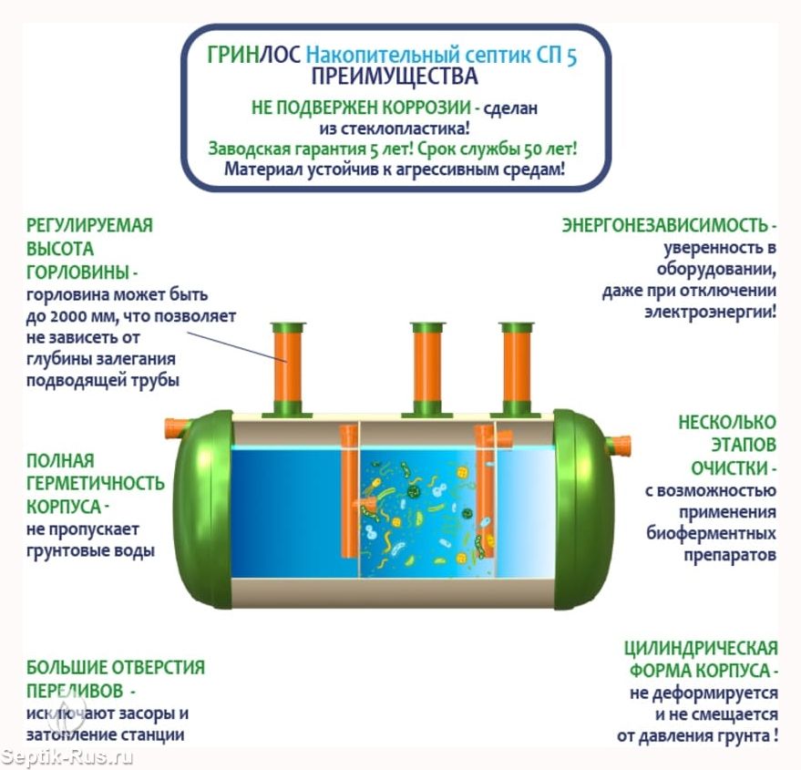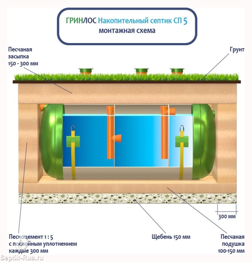 Доставим и установим септик Накопительный септик Гринлос СП 5 за 1 день по цене ниже конкурентов и скидкой на монтаж до 29%. Звоните!
