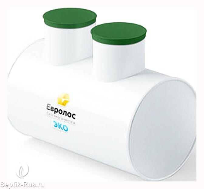 Схема установки септика Евролос ЭКО 6 для песчаных грунтов и при низком уровне грунтовых вод